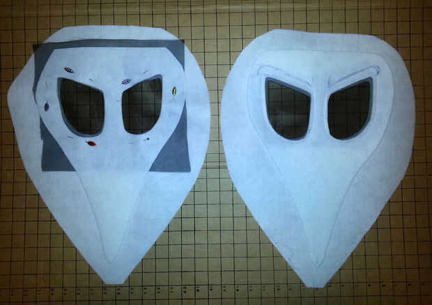 Para la máscara, empecé con algunos rígida entretela fusible - una capa en la forma de la máscara y una capa más pequeña de stablity. Entre las dos capas inserta una pieza de puro negro Satén y cosido recto alrededor de los ojos, luego recortar el exceso satén.