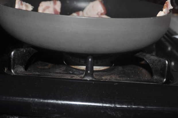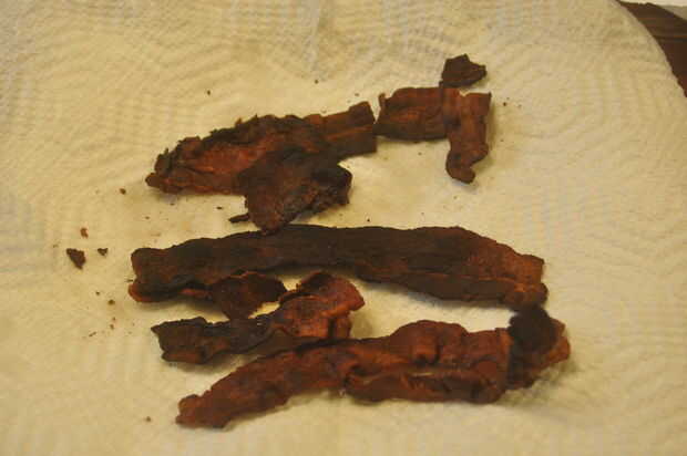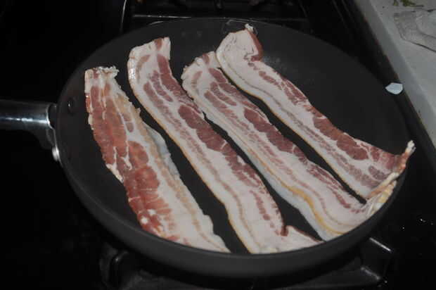 Es el momento de obtener su boca de riego. El primer paso de este proyecto es cocinar el tocino. Es bastante simple. Paso 1, salir de una sartén. Paso 2, saque el tocino. Paso 3, esperar para ello... poner el tocino en la sartén, pero no todos de él! SÓLO CUÁNTO PUEDE CABER SU SARTÉN! .... Woah allí, tienes que calmar. Tiempo para el paso numero 4! Encienda la estufa (Asegúrese de que sabe cómo hacerlo sin lastimarse a sí mismo. Si no está seguro, pregunte a un adulto maduro). Paso 5, voltear continuamente bacon mientras su cocina con una espátula o lo que quieras utilizar. ADVERTENCIA - la grasa de tocino "escupe" fuera de la sartén, así que ten cuidado. Último paso, el paso número 6, cocine el tocino hasta que es muy quebradizo, esto hará que sea más fácil para usted más tarde. Sólo pude hacer unos 4 trozos de tocino en un momento, y para este proyecto necesita 10 piezas más o menos, así que hice otra tanda de tocino. Y luego otra hornada porque estaba hambriento. Después de que el tocino está cocido, colocar el tocino entre toallas de papel para bajar la grasa. Asegúrese de que obtener más de él.
