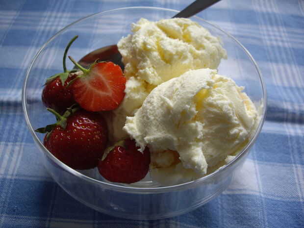 Esta es la mejor crema de fresa porque contiene fresas reales y sabe como helado. Va muy bien con torta de chocolate. Pero estoy mirando hacia adelante a ver otros usos para él.Paso 1: ingredientes250g de helado de fresas50g de azúcar glas100ml de le