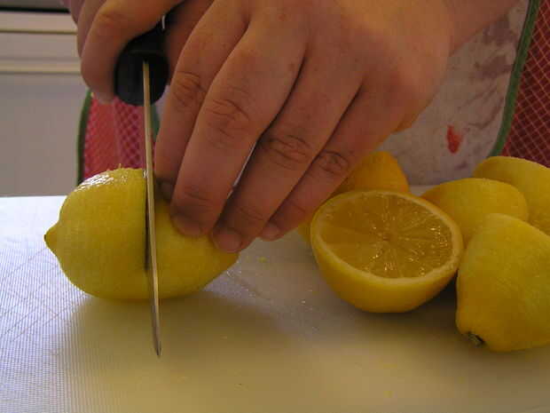 Reducir a la mitad los limones y limber, listo para la broca exprime.