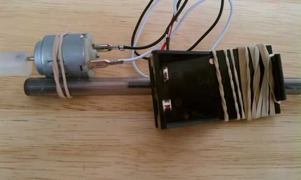 Conecte el lápiz al motor usando las gomas como en la foto.