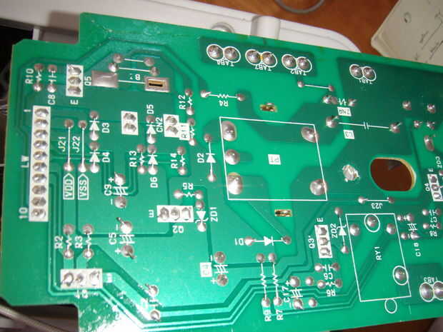 Como se puede ver en las fotos, la máquina de BBCC-V20 que utilicé tiene una clara separación de las placas de circuitos que tienen respectivamente el controlador computarizado con la interfaz de usuario y la potencia y relés de conmutación de alta tensión. Además, el silkscreen en placas de circuito impreso tiene etiquetado extensa de componentes y señales en ambos lados (esto es bastante inusual en los aparatos de consumo, hace más fácil de reparar que lamentablemente suele ser no lo que quiere el fabricante).