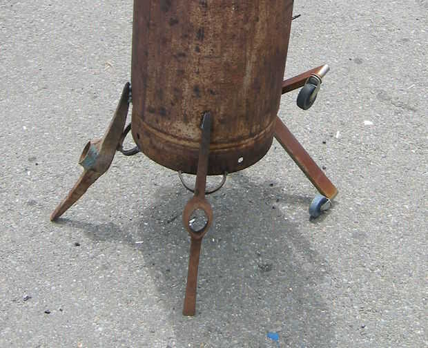 Para las patas delanteras se utilizó la base de una silla de oficina para una mirada de "cráneo y crossbones".