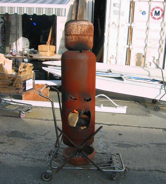 Orificio de la chimenea más grande y me soldó con autógena a un tanque de propano pequeño en la parte superior con la parte superior e inferior de corte.