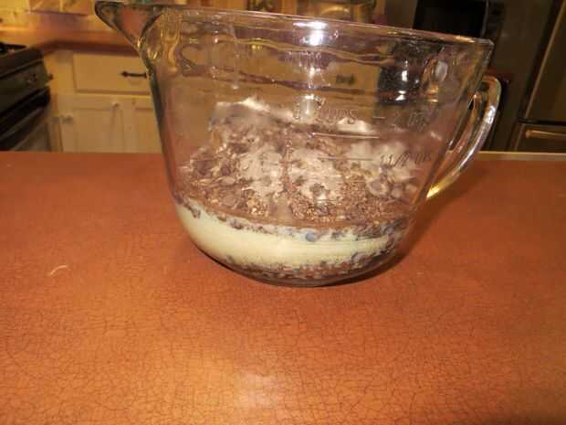 Repita para la capa superior de las barras después de vaciar el contenido en la bandeja de 13 X 9, como se detalla en el siguiente paso
