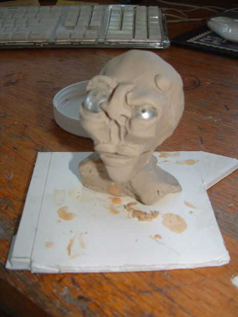 Usé la Roma no secado arcilla y realiza una escultura rápida. Tenía algunas joyas de traje, así que seleccioné un fake de grande y mediano perla para los ojos.