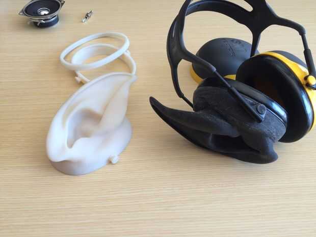 El objeto de la impresora puede imprimir 2 materiales al mismo tiempo, así para la diversión que quería ver si podía tengo oído de goma suave en una taza de cáscara dura, que es donde estoy ahora. Como veis en la foto, no es un negro profundo por lo que tendría que rociar la pintura...
