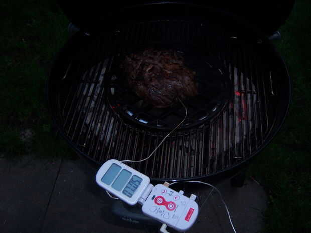 Después de que usted había asado todos los lados, es hora de cambiar el heatimpact a uno indirecto. Poner un termometro en el interior y tal vez disfrutar de una cerveza. El goaltemperature que puse es 53 ° C/127 ° F durante alrededor de media final.