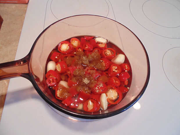Poner en una cacerola, a fuego medio, agregue el azúcar y poner a hervir.