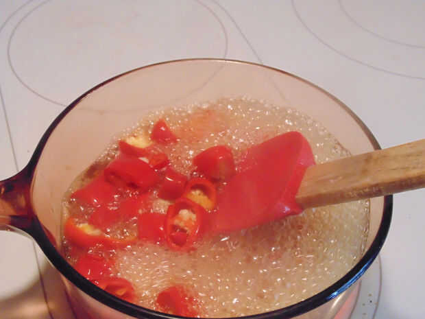 Hervir la mezcla durante 10 minutos, revolviendo suavemente para asegurar el azúcar no se quema en.