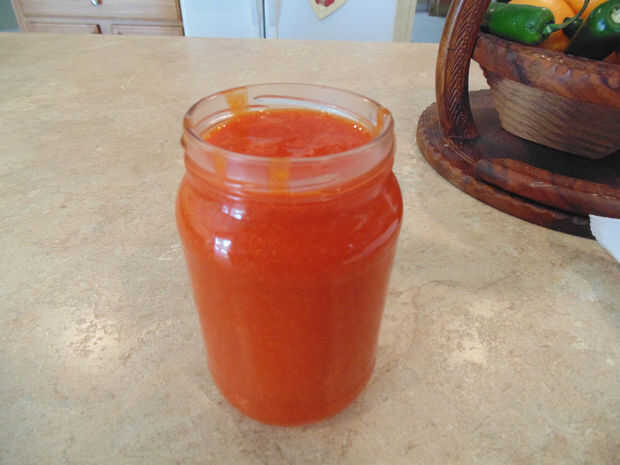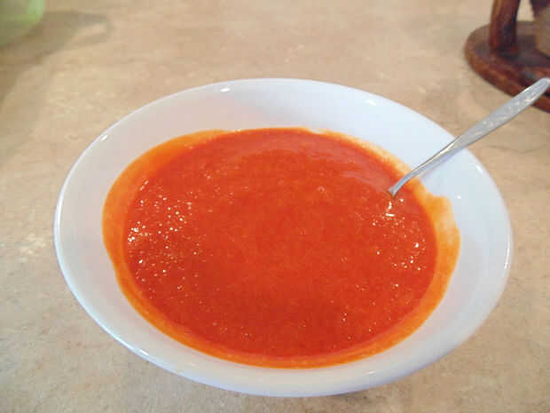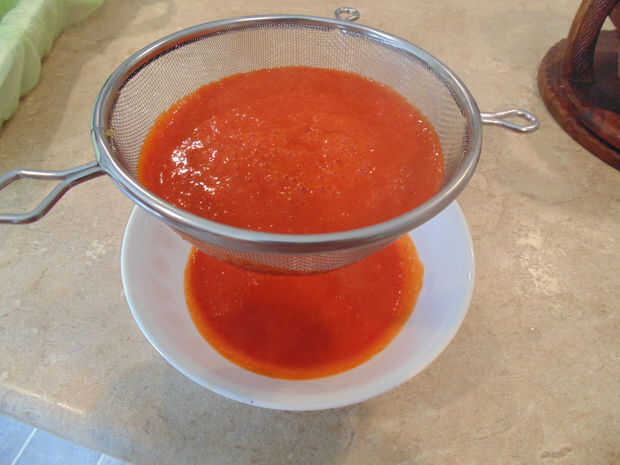 Cuando listo, colar la mezcla por un colador de malla pequeña, para eliminar la salsa de los trozos de pulpa y semilla.