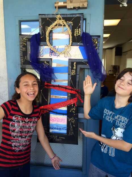 Manos y pies en este mundo de Cristo es nos está representado por los niños haciendo la Cruz.