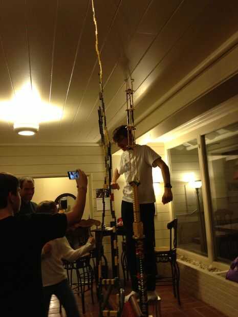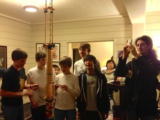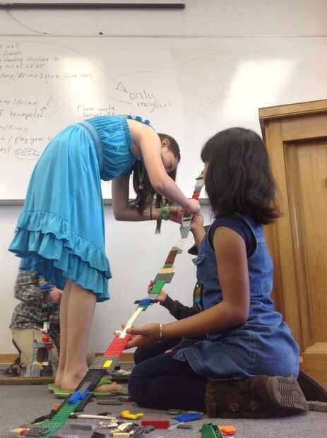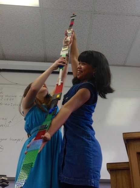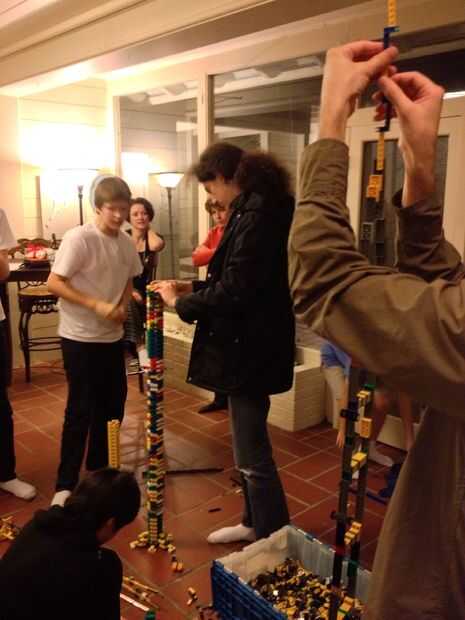 Para mi grupo de jóvenes creadores (14 años) lo desafió a una carrera para hacer una estructura de lego de pié que comenzó desde el suelo y alcanzó el techo de 11 pies.