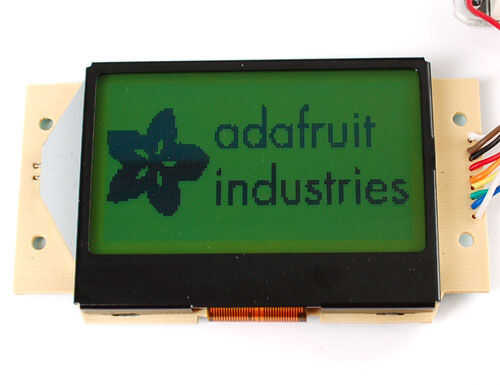 Este mini-tutorial pasará por el proceso de creación de una pantalla LCD de ST7565. Estas pantallas son gráficos que significa que pueden mostrar píxeles, no sólo texto. Este tipo de LCD en particular tiene 128 x 64 pixeles, que aparecen de color gris oscuro sobre un fondo verde y azul. Tienen una luz de fondo pero puede usarse sin la luz de visibilidad durante el día.