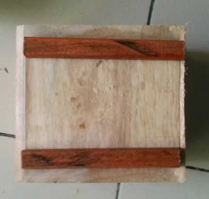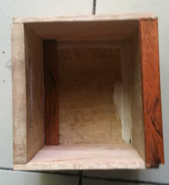 Construir una caja básica... es cuadrada que no se acumula. Recuerde primero, corte las ranuras para el asimiento del dedo. Para cortar las ranuras de encuentran el punto central. Luego marque 2 pulgadas desde el punto de cada lado. perforar en ambos extremos... dibujar líneas en la curva superior e inferior y corte con una sierra de banda o jigsaw. cortar 2 cuadrados clavijas el ancho de las tablas de retención de dedo... pase a través de la caja para asegurarse de que le caben... y fijar en la parte inferior... puede pegamento, clavos o hacer ambas cosas!