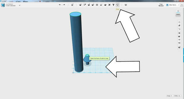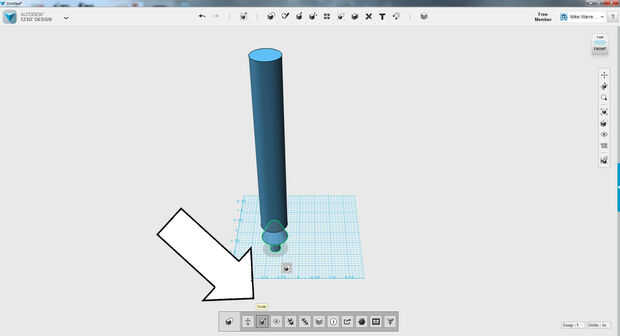 El icono de complemento de la barra de acción superior, haga clic en la parte inferior del cilindro altura referencia y luego la parte superior de la lámpara, apilando el cilindro directamente encima de la pantalla.