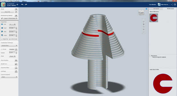 Si hay algún problema con el modelo de la impresión en el papel especificado que el programa hará hincapié en el trozo que está causando el problema. Esta área resaltada me muestra que este segmento particular es loo grande para ser impreso en una hoja y demasiado pequeño para ser dividida en segmentos como las rodajas más grandes debajo de él.