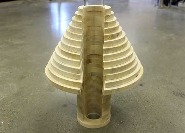 Antes de cortar el tubo a la longitud es una buena idea para hacer un ajuste de prueba. Inserte el tubo en la pieza de la parte inferior de la lámpara apilada y apilar las rebanadas de la lámpara en la parte superior para tener una idea de cómo se construye la lámpara.