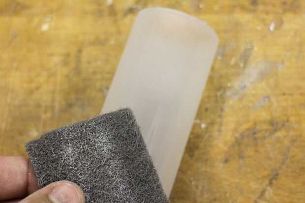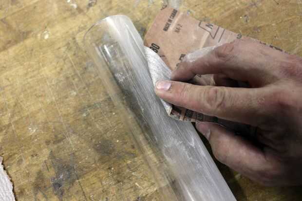 Usando una lija de grano fino de 150 arena o arena más alta del tubo a lo largo del eje, esto evitará que los avances lijadoras uniforme a lo largo de la longitud del tubo. Cambiar hasta un grano más fino para suavizar cualquier gubias, luego terminar con un par abrasivo sintético incluso lijar y alisar el acabado.