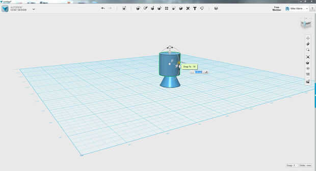 Haga clic en el cilindro para abrir la barra de acción para que la forma en la parte inferior de la pantalla. Haga clic en el icono mover de la barra de acción y verás las flechas aparecen en el cilindro, mueva el cilindro sobre el cono. No importa donde el cilindro es exactamente sobre el cono, como la punta completa del cono está traslapada con la parte inferior del cilindro.