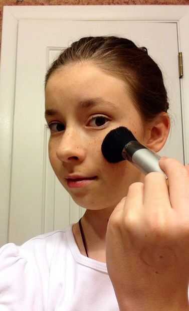 Tomar su blush, he usado rosa nacarado de Wet ' n ' Wild, lo pase arriba y abajo de sus mejillas hacia la sien.