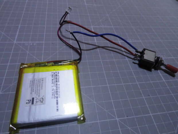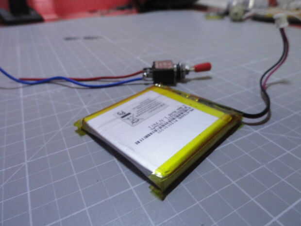 Añadir un interruptor SPST a la batería de iones de litio. Cortar un terminal de la batería y conectarlo con el interruptor SPST que desde fuera