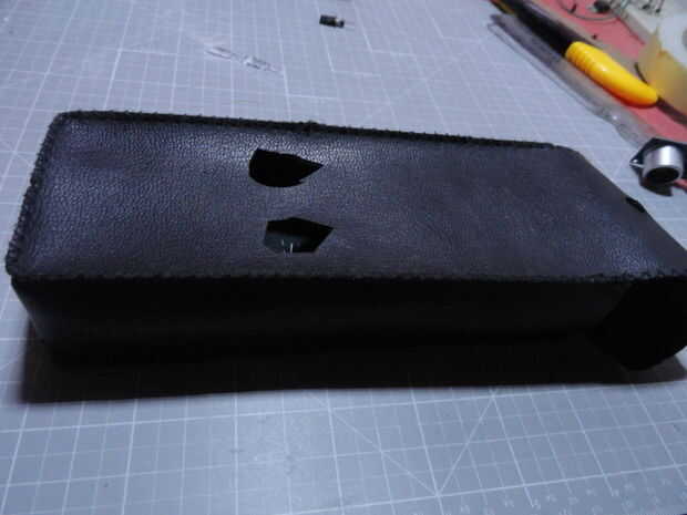 Tomar el esqueleto y taladrar los orificios para cables, interruptores táctiles y HC-SR04. Después de eso Corte agujeros en la tapa para HC-SR04