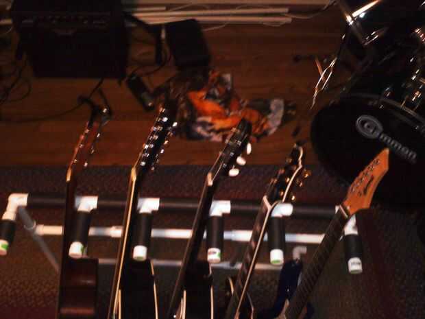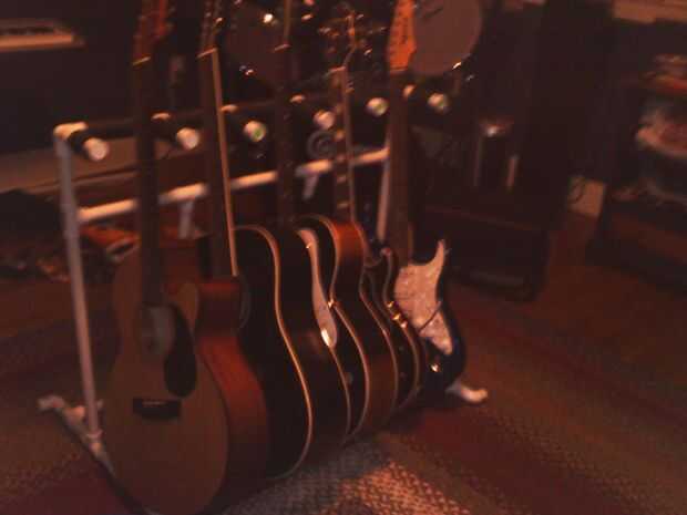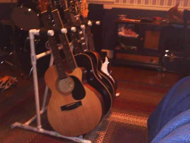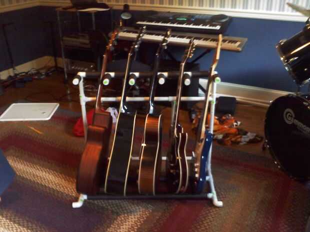 Máximos, cinco guitarras extender a la anchura del soporte proporcionalmente si quieren mas, todavía debe ser estable. Si es necesario, añadir un tercer soporte diagonal en la parte posterior. Otra vez pintura negra para algún factor de culo mal.
