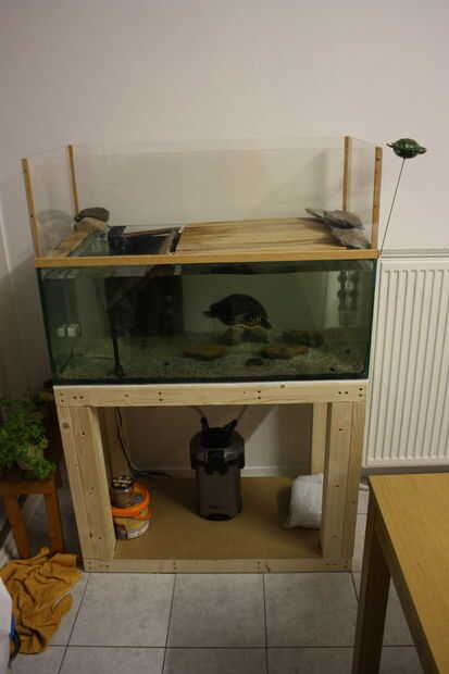 este acuario fue diseñado para un tanque de 40 galones criador en la parte superior, con una puerta lateral oculta para permitir que un tanque de 20 galones largo para colocarse dentro de un colector de aceite. Fue más un poco de tamaño para permiti