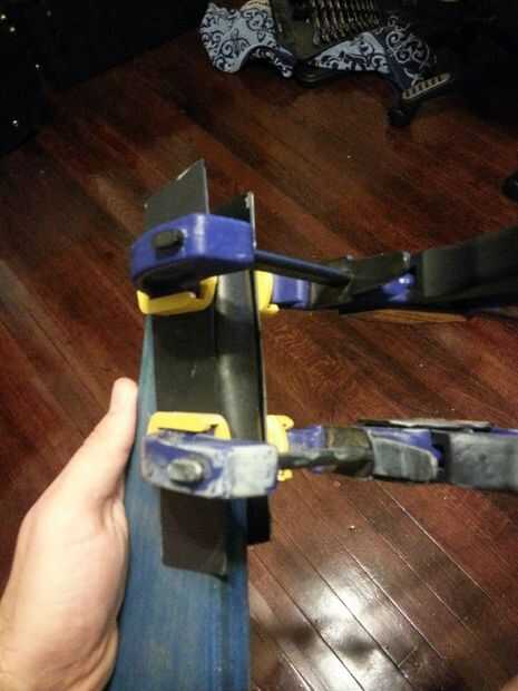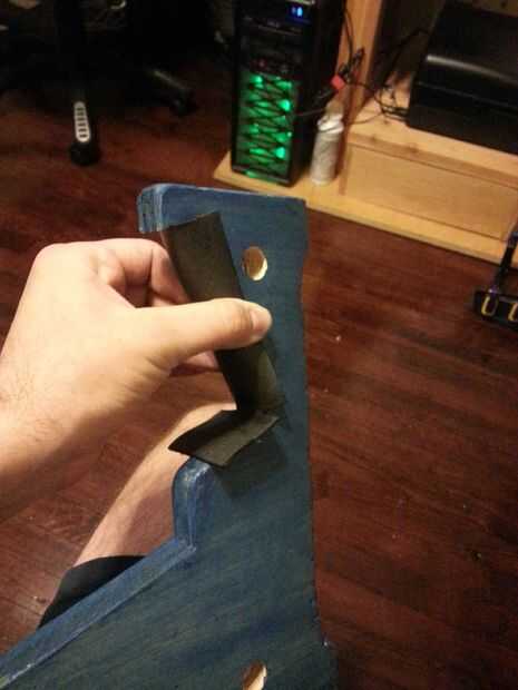 Hice las almohadillas para la espalda y parte inferior apoya fuera algunos de piel curtida de verduras que teñido negro con una solución de vinegarroon. Usé algunos woodglue y luego lo reprimieron. Epoxy puede ha hecho un mejor vínculo. la parte más delicada fue averiguar los cortes del codo para las almohadillas de la parte inferior.