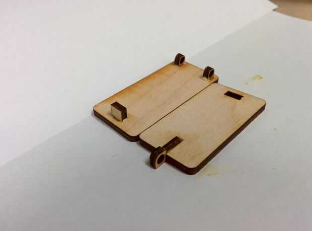 La pieza larga con tres agujeros es la base que las dos bisagras idénticas. La placa superior tiene la bisagra larga con el ángulo recto.