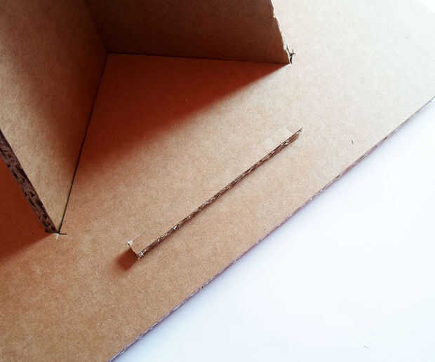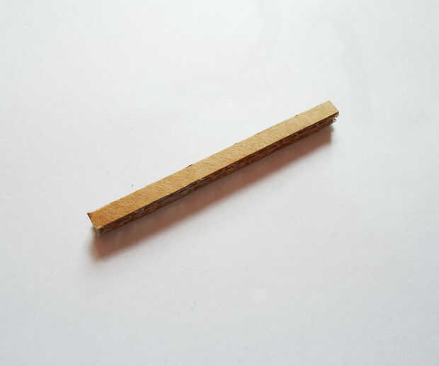 Finalmente, corte una tira delgada de cartón de 0, 5 x 9 cm (0,19 '' x 3,54 ''). Este tamaño no es importante, realmente una de las tiras que quedaron de los cortes anteriores.