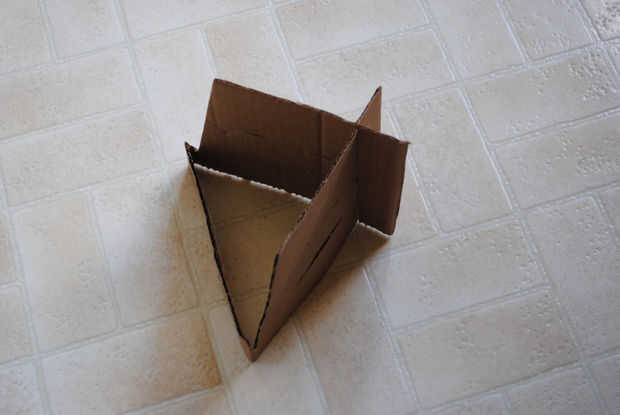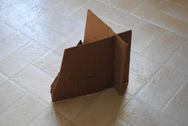 Ahora doblar ambos lados hacia atrás y coloque la parte superior de la raja en la ranura de la parte inferior. Si se cortan ambas rendijas exactamente a la mitad el stand debe sentarse a ras con el suelo. Si ni siquiera es ajustar en consecuencia los cortes.