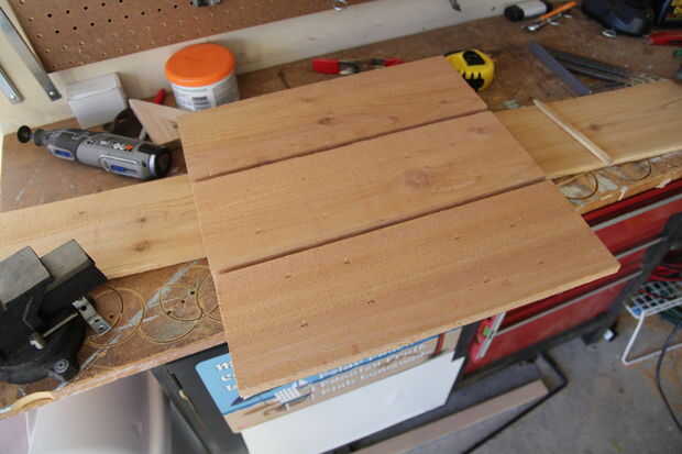 usé 2 8 pies 5/6 x 6 cedro cerca tablones, algunas piezas extras de tableros roble de 1 x 6, mi pistola de clavos y una sierra.