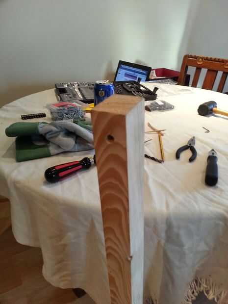 Para nuestros propósitos, necesitamos hacer un agujero a través del stand para pase un lápiz como eje de las cuchillas encender.
