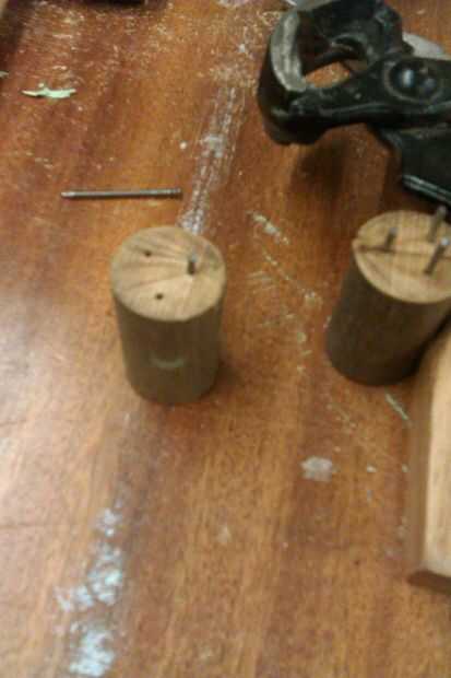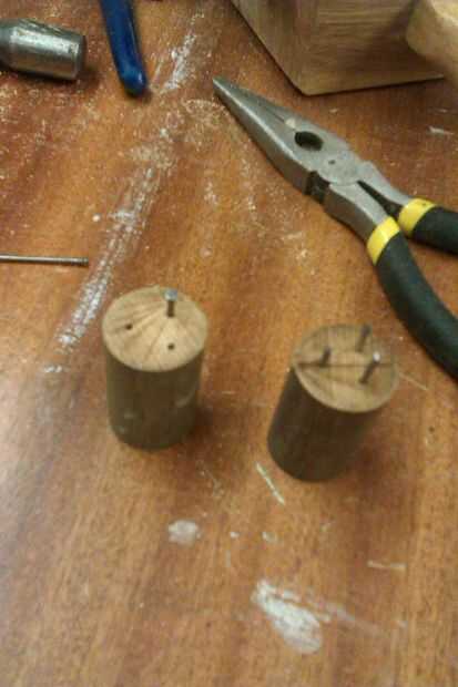 ahora perfore un agujero en la parte inferior del segmento 5" tronco. ahora ponga su círculo más grande en la parte superior y uñas y cola. Ahora poner clavos en los orificios de los segmentos del tronco y cortar la cabeza. Ahora poner pegamento en la parte inferior y martillo. y repita.