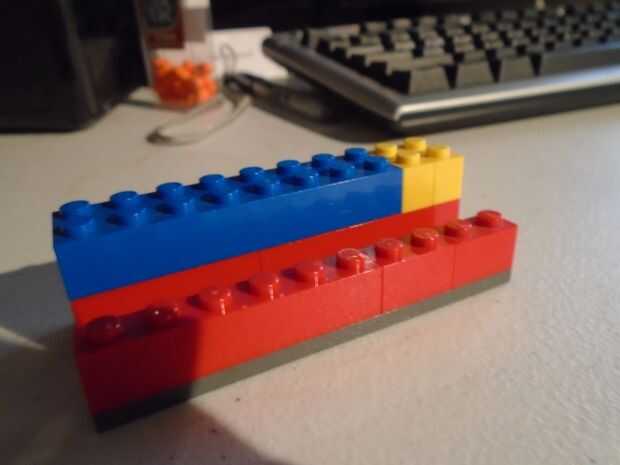 Utilizar el 8 x 2 (el ladrillo azul) y los otros 2 2 x 1 (amarillo) en el otro extremo de la pieza coloca sólo