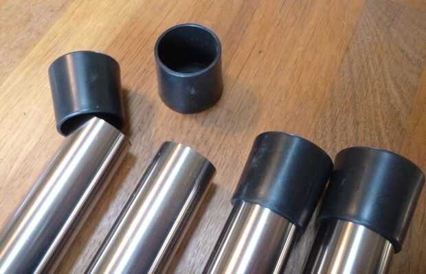 El empuje solo de pie tapas derecha en las tuberías, escoge cuatro de los 23" tubos las patas verticales y poner las tapas de pie en ellos.