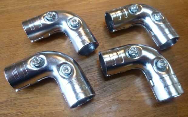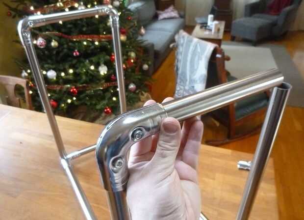 Coloque las mitades de v-empalmes juntos por todos los 4 de las articulaciones, fije los tubos de 9 pulgadas a la estructura con las juntas v y apriételos con la llave hexagonal.