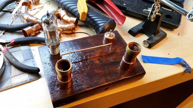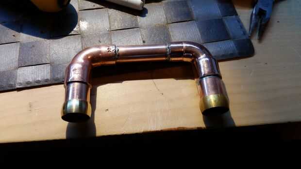 Soldadura todo como se muestra en las fotos. Usé los anillos de latón por lo que no ves las asperezas. Asegúrese de que la parte que vas a pegar la arena. Así que el latón del anillo en el interior y el tubo de cobre. Poner algún pegamento en ambas partes. Una vez que las piezas toquen la cola se establece en 3 segundos. Así que cuidado con eso.
