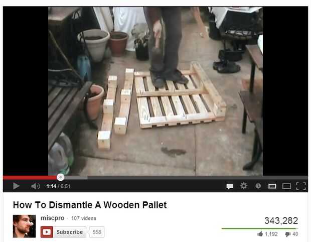 La parte más difícil del trabajo. Las paletas no se significan para ser tomado además. Solía destornilladores, Sierra y martillo para desmontar las paletas.