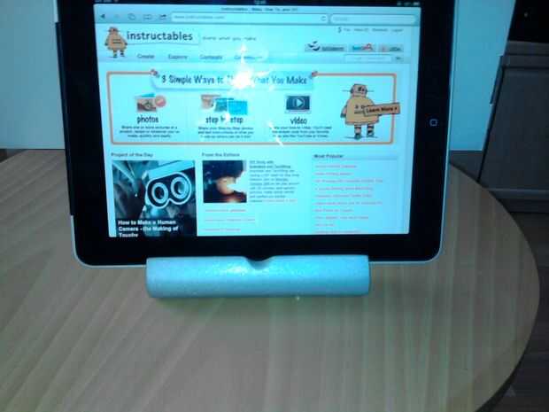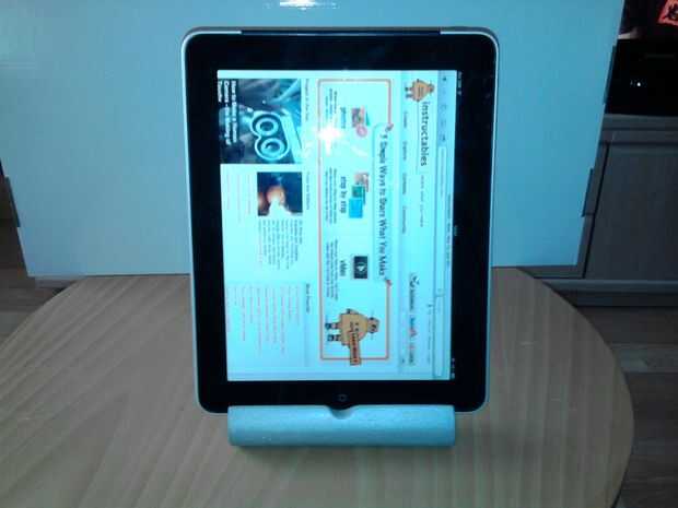 esto es una buena alternativa a todos los grandes y torpes soportes para ipad.Me tomó menos de 10 minutos y 2 herramientas para hacer este eleganteLo que usted necesita:x un Ipadx 3 mm de espesor Plexiglasx una sierra de calarx una pistola de aire ca