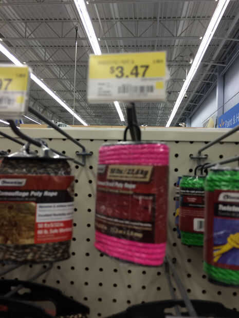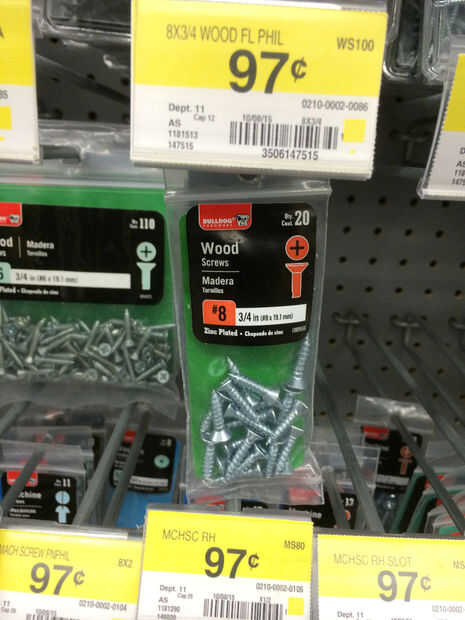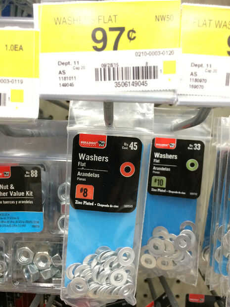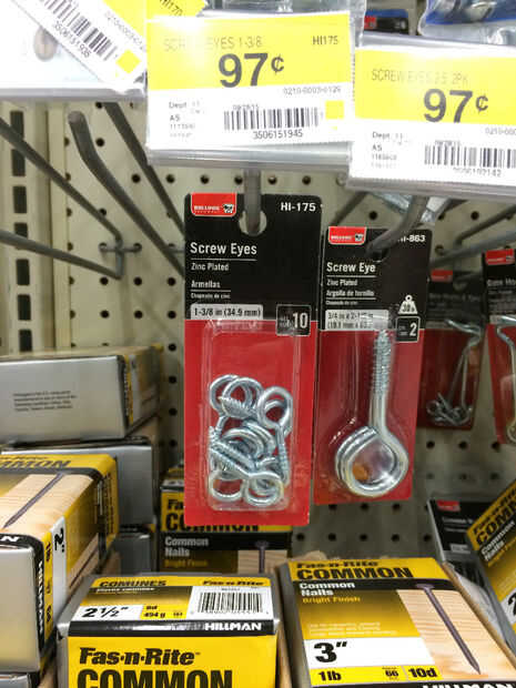 los tornillos, arandelas y cuerda pueden encontrarse en la sección de hardware.