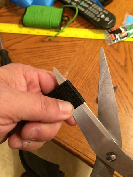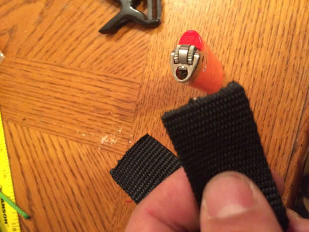 tomar el pie 6 correas de amarre. Retire todas las hebillas y guardarlas para otro proyecto. tomar la correa y cortarlas a la mitad. hacer 2 tramos de 3 pies. Use un encendedor y los extremos cortados de la chamusquina.