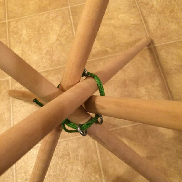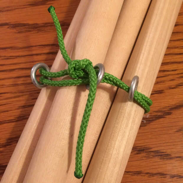 Pase la cuerda de nylon en cada uno de lo ojeteador, dos veces y utilice un nudo cuadrado y atar flojo.