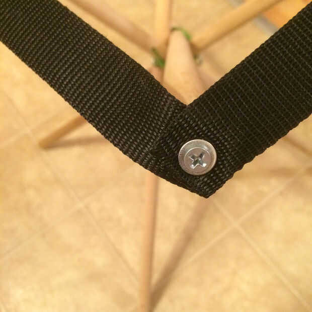 Ahora use una arandela y un tornillo y el tornillo a través de los agujeros hechos en las correas. Asegúrese de que cada extremo de la espiga tiene 2 correas.