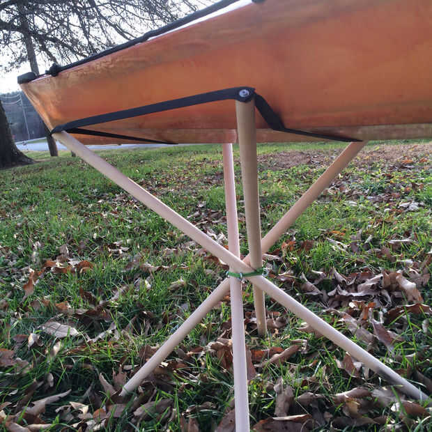 Ahora debe tener un par de soportes portátiles kayak. El proyecto tomó alrededor de 1 hora hacerlo. fue más que suficiente Mostrar mi kayak SOF pesos alrededor de 30 libras. Si el kayak es más pesado que le sugiero ir a Home Depot o Lowe y conseguir roble clavijas. y tal vez la cuerda 3 veces alrededor de las clavijas de madera. Con los tacos roble actualización no veo ninguna razón que los stands no apoyará un plástico estándar kayak hasta 75 libras.