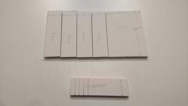 Se necesitan 4 piezas de soporte, cada 5mm de ancho y 20mm de largo.
