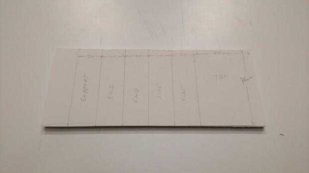 2. Continuar midiendo desde la línea que a creado y marque 5 línea más cada 20mm de la anterior. Yo he marcado la imagen para mostrar el propósito de cada sección.