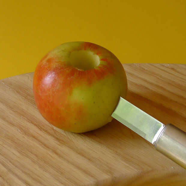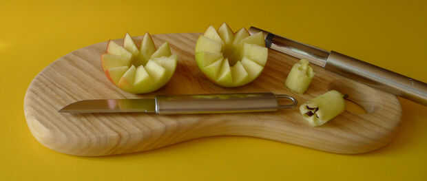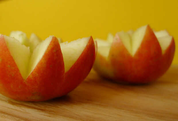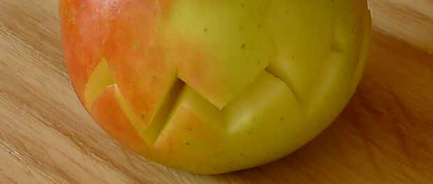 - A lo largo de todo el 'Ecuador' de la manzana hacen los dientes de forma triangular con el cuchillo;